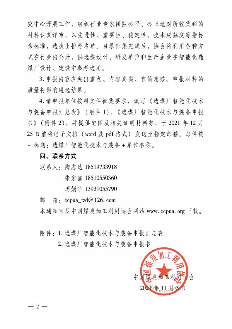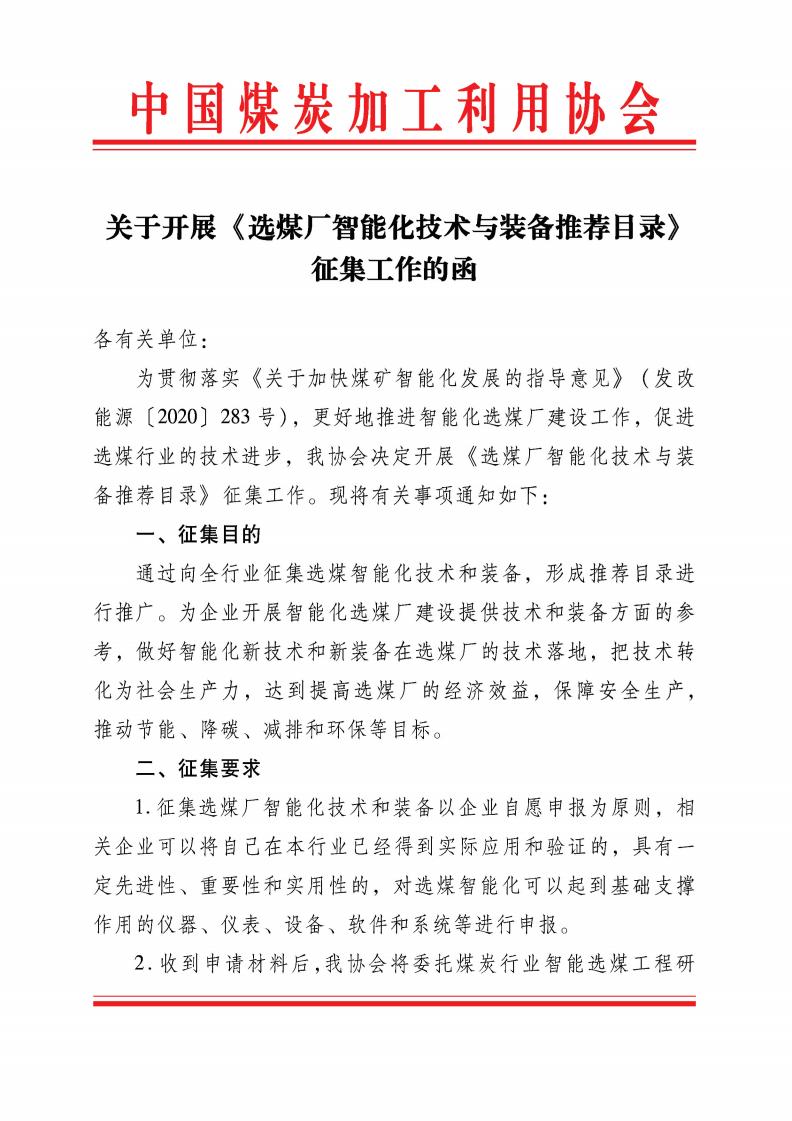 关于开展《选煤厂智能化技术与装备推荐目录》征集工作的函
