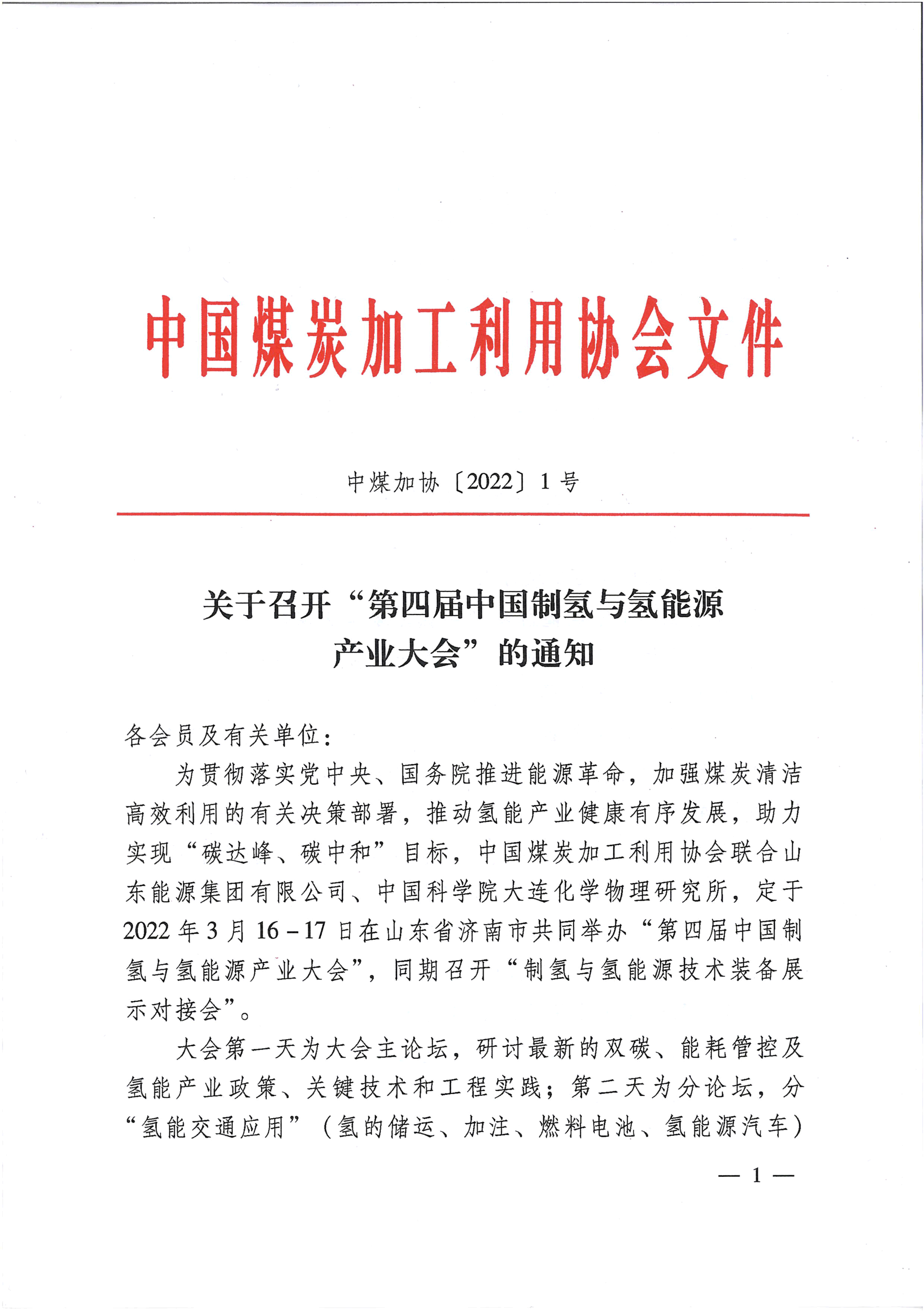 关于召开“第四届中国制氢与氢能源产业大会”的通知