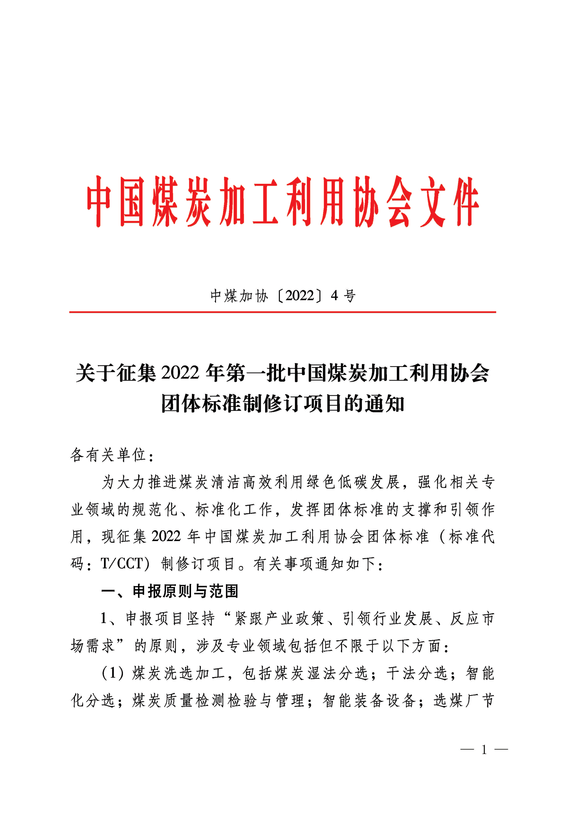 关于征集“2022年中国煤炭加工利用协会团体标准制修订项目”的通知