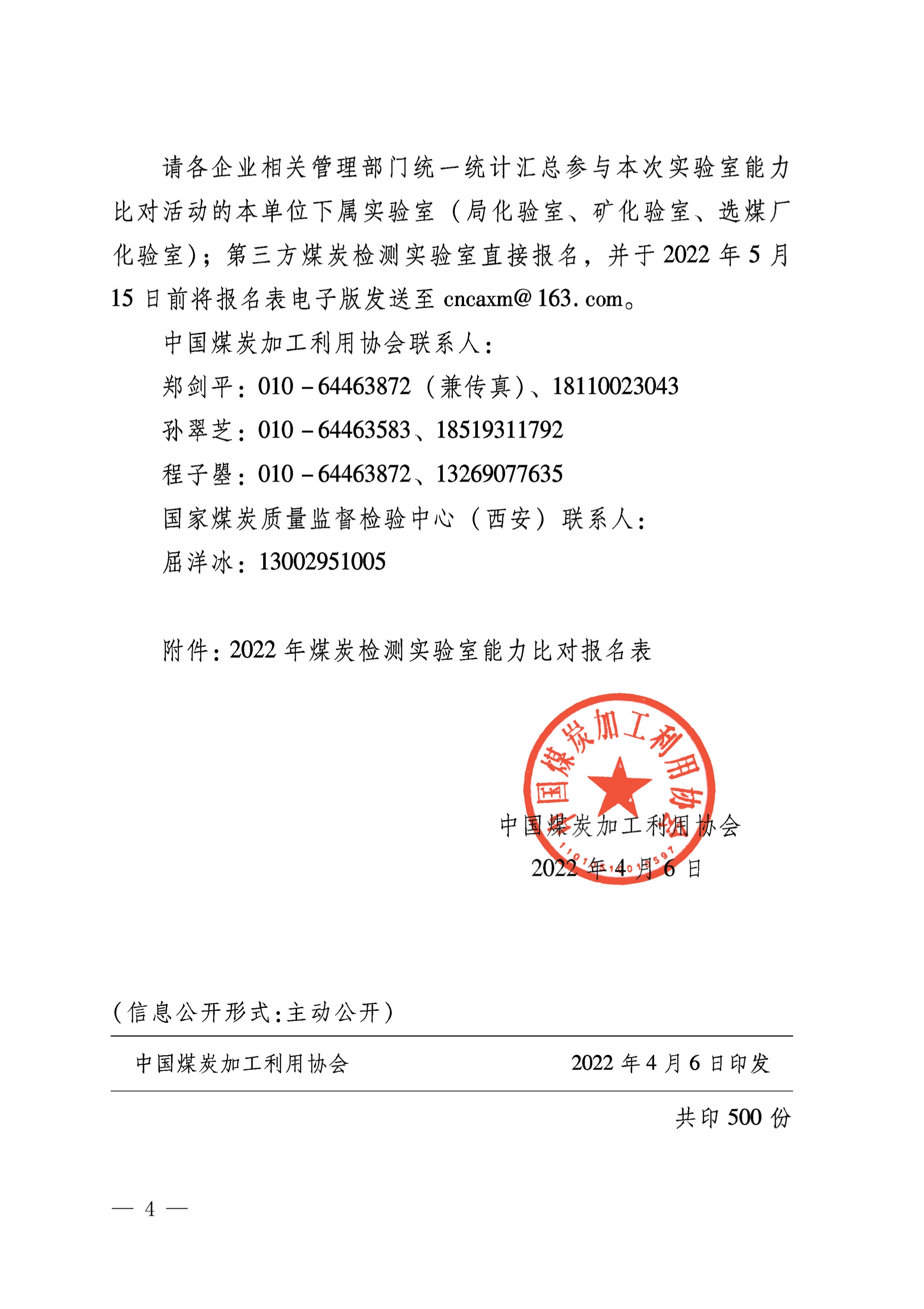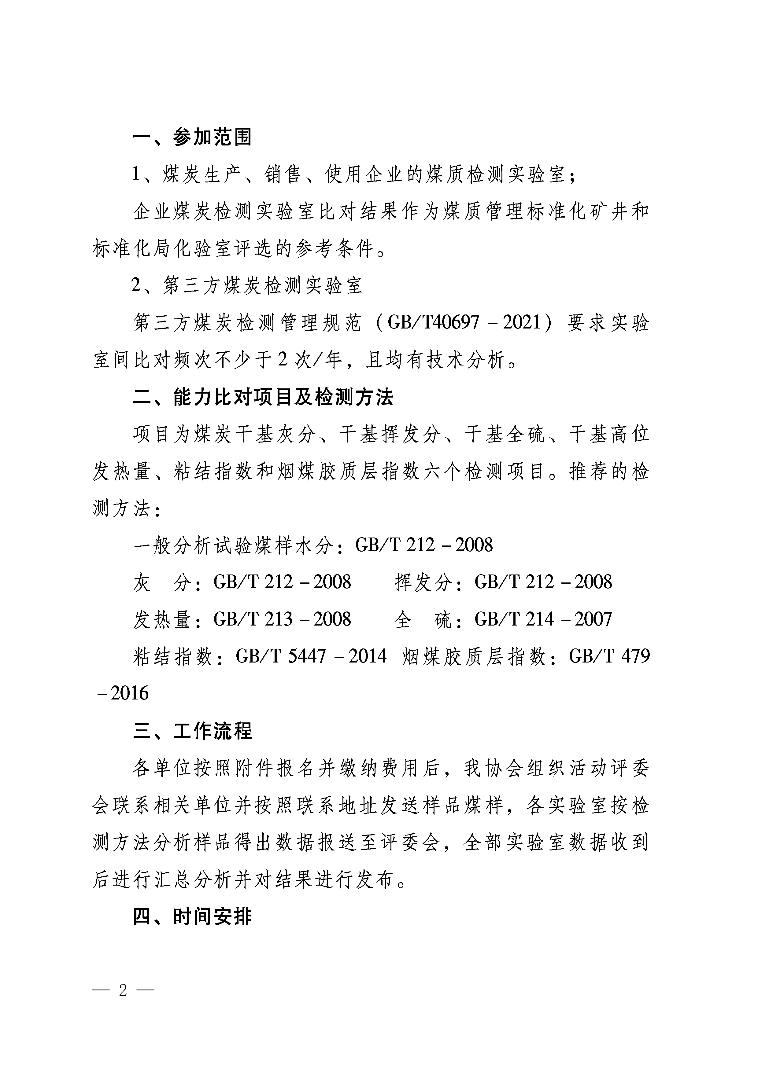 关于开展2022年煤炭检测实验室能力比对活动的通知
