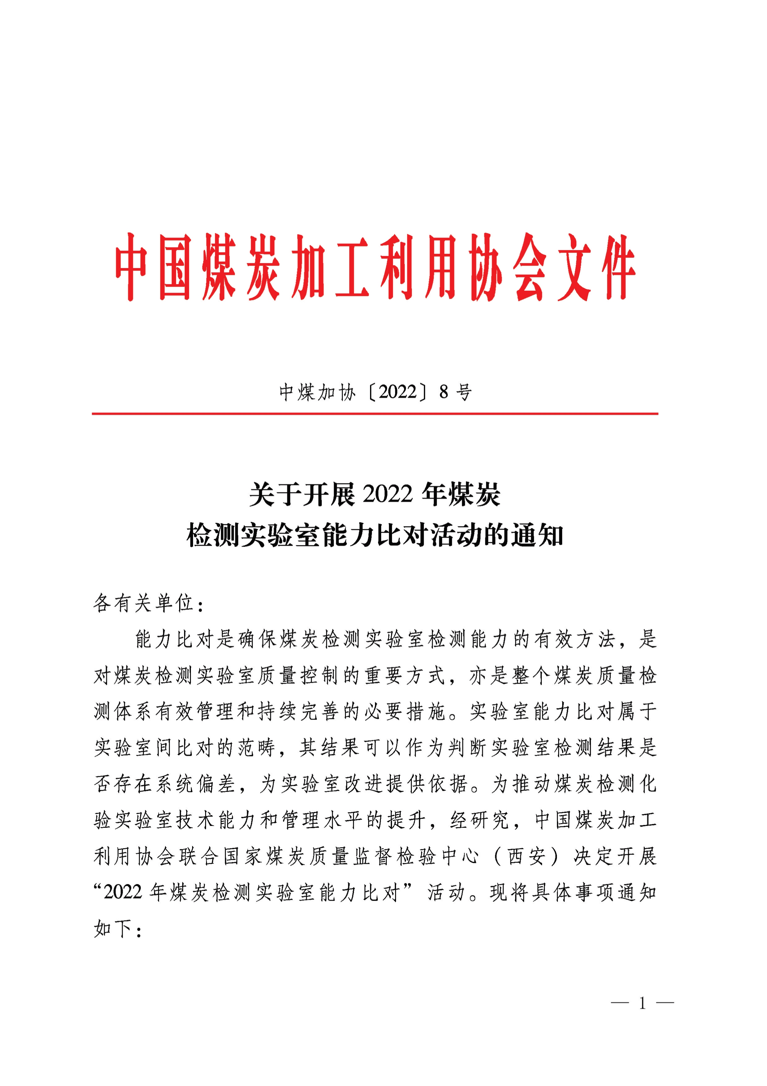 关于开展2022年煤炭检测实验室能力比对活动的通知(下载)