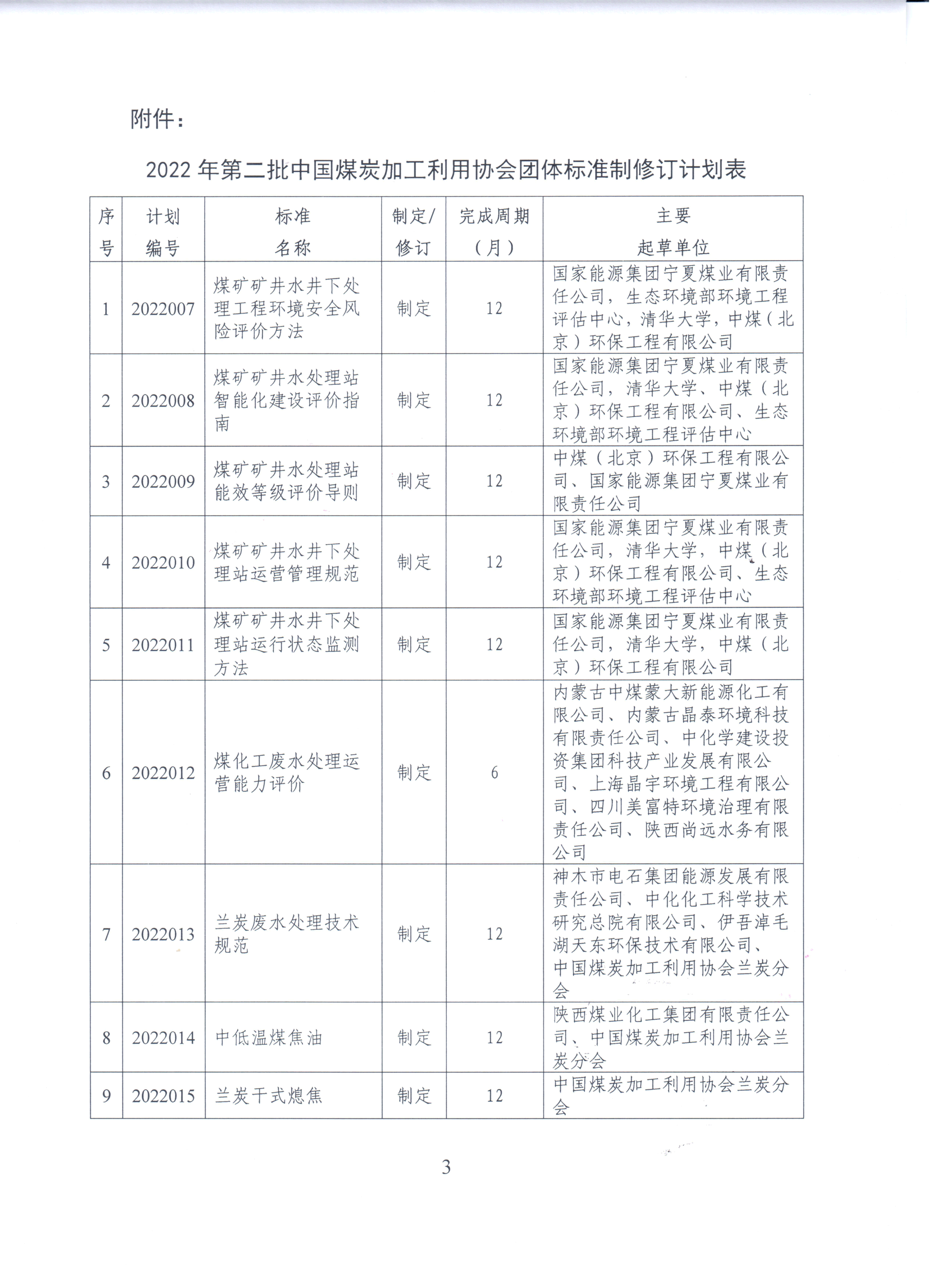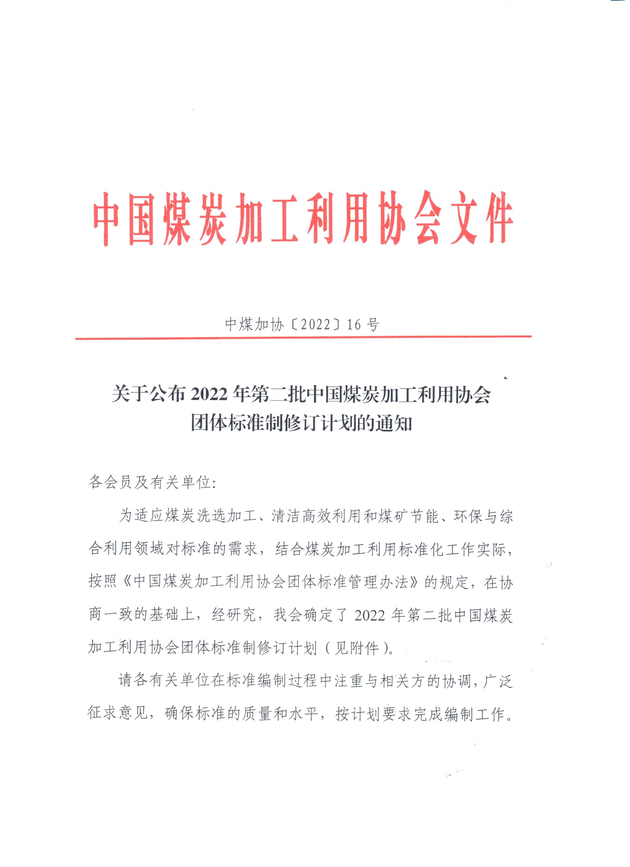 关于公布2022年第二批中国煤炭加工利用协会团体标准制修订计划的通知