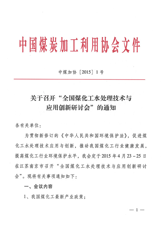 关于召开“全国煤化工水处理技术与应用创新研讨会”的通知