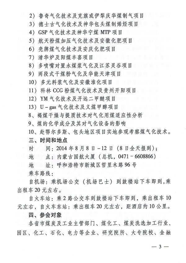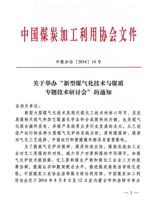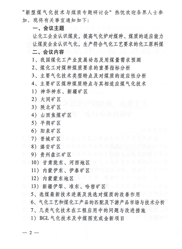 关于举办“新型煤气化技术与煤质专题研讨会”的通知