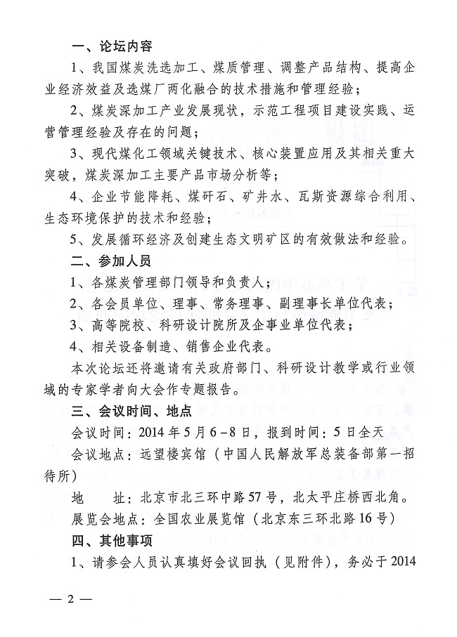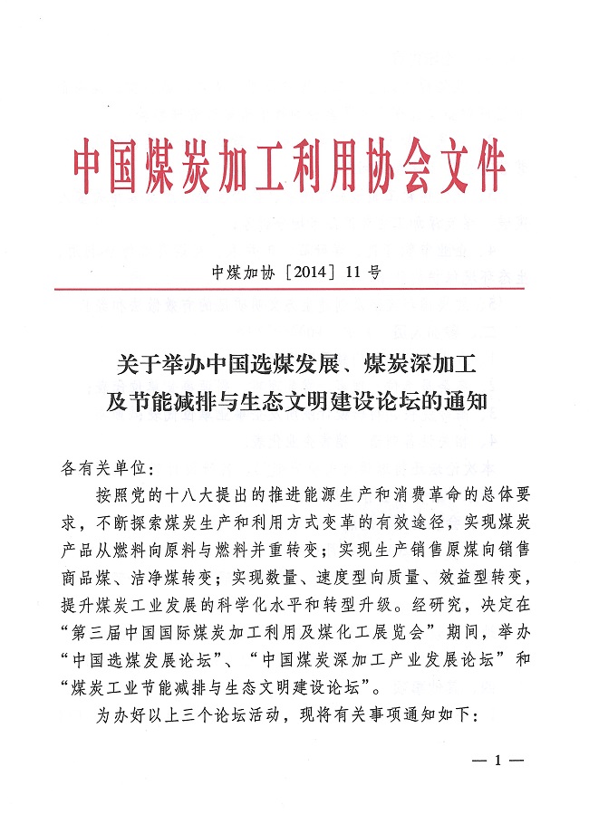关于举办中国选煤发展、煤炭深加工及节能减排与生态文明建设论坛的通知