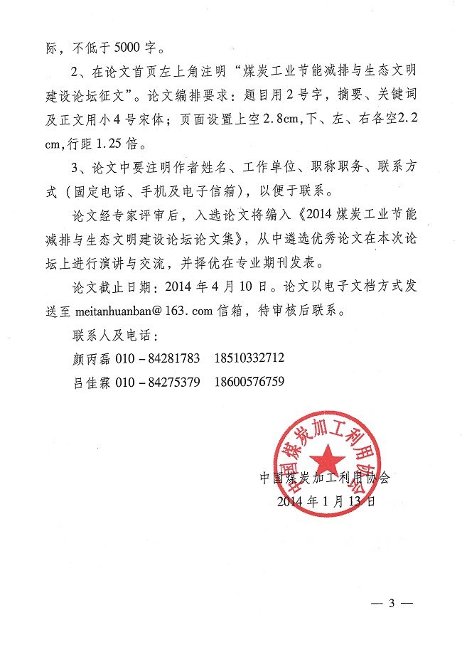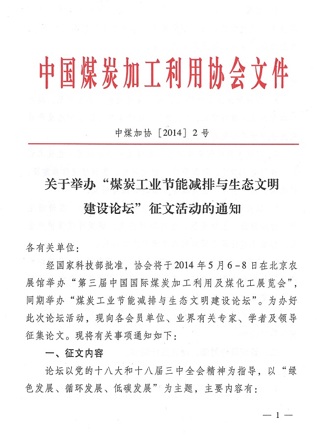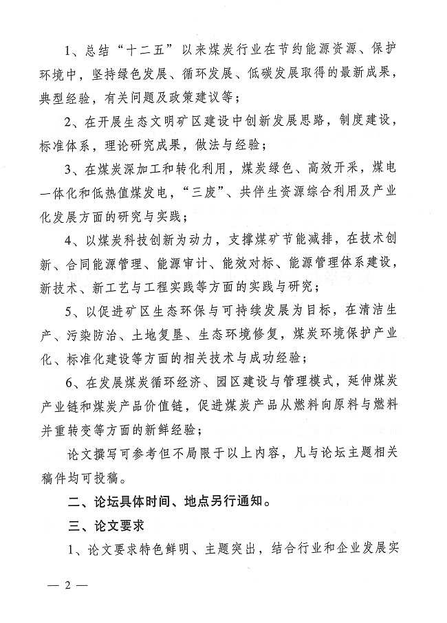 关于举办“煤炭工业节能减排与生态文明建设论坛”征文活动的通知