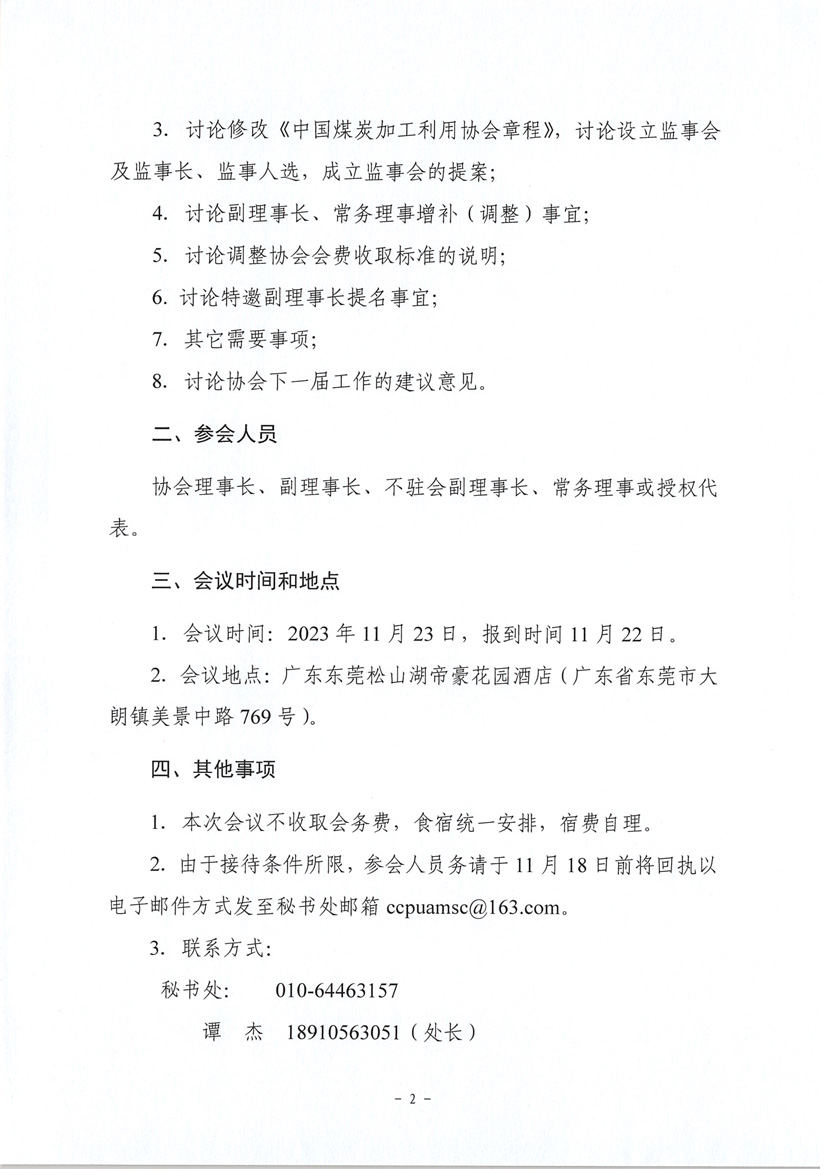 关于召开中国煤炭加工利用协会第七届理事会第十次常务理事会议的通知