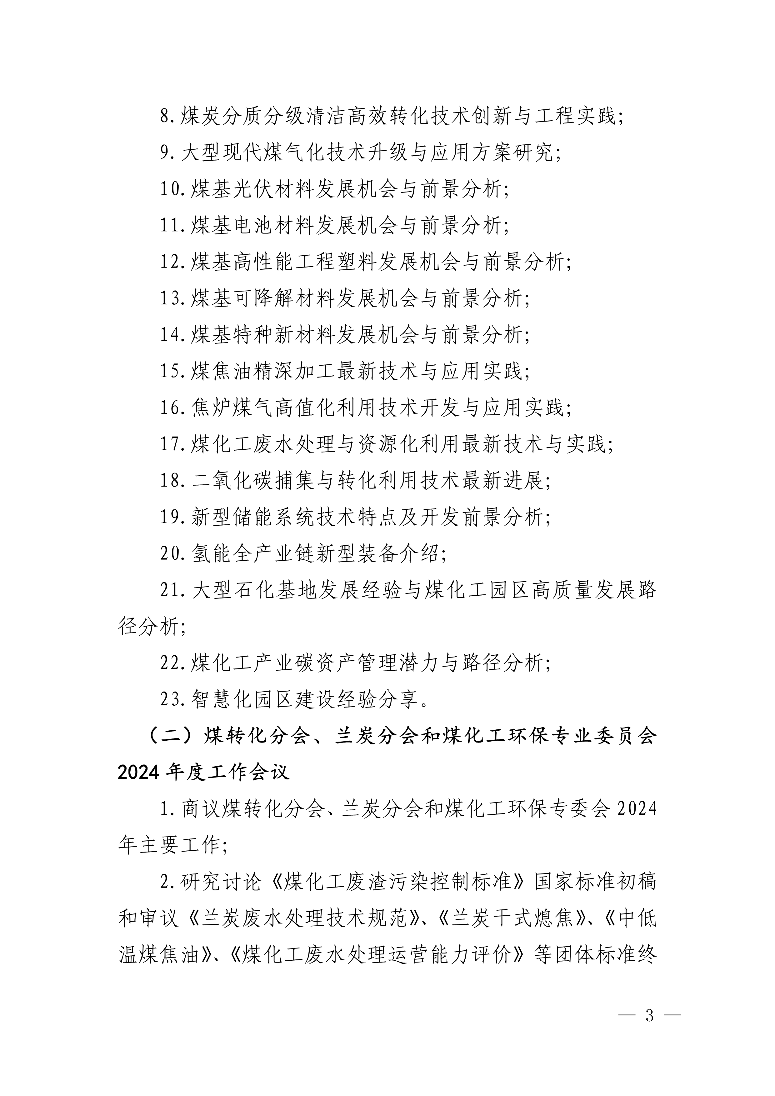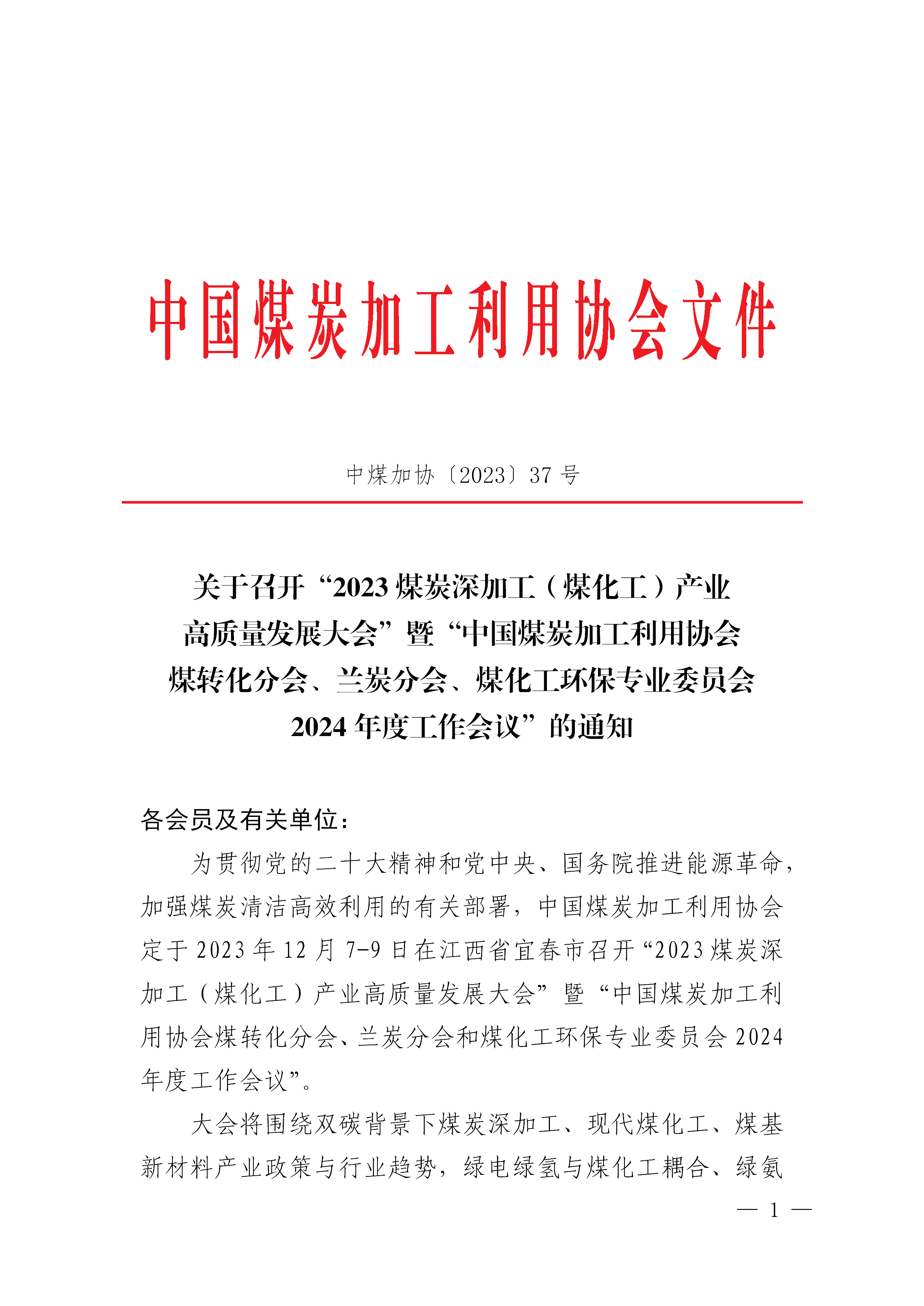 关于召开“煤炭深加工(煤化工)产业高质量发展大会”暨“中国煤炭加工利用协会煤转化分会、兰炭分会、煤化工环保专业委员会2024年度工作会议”的通知