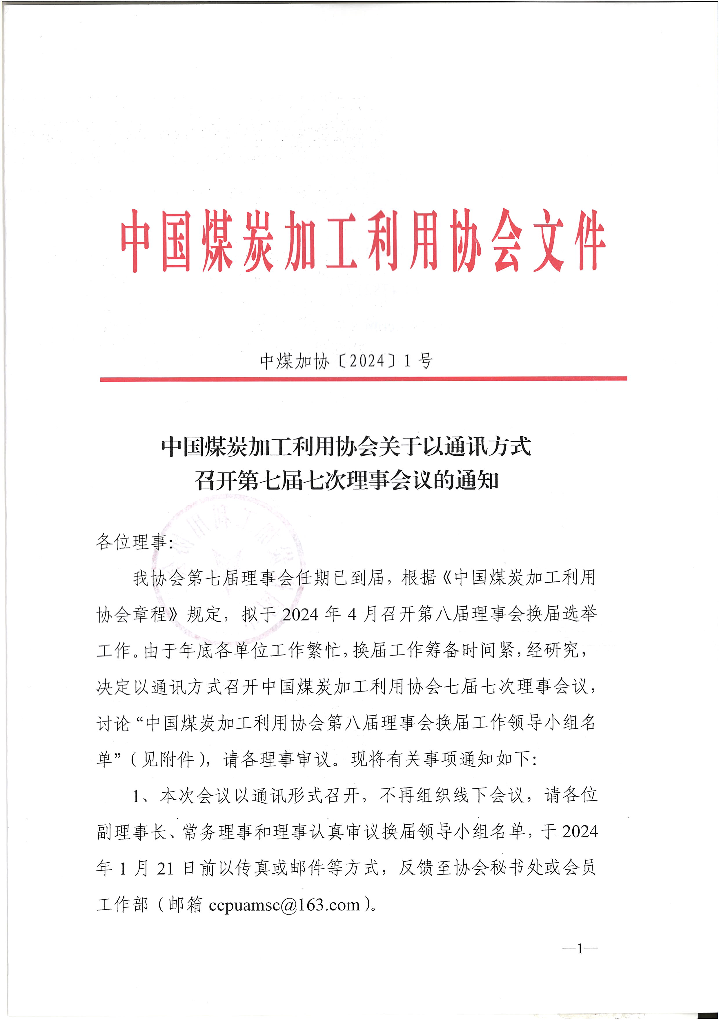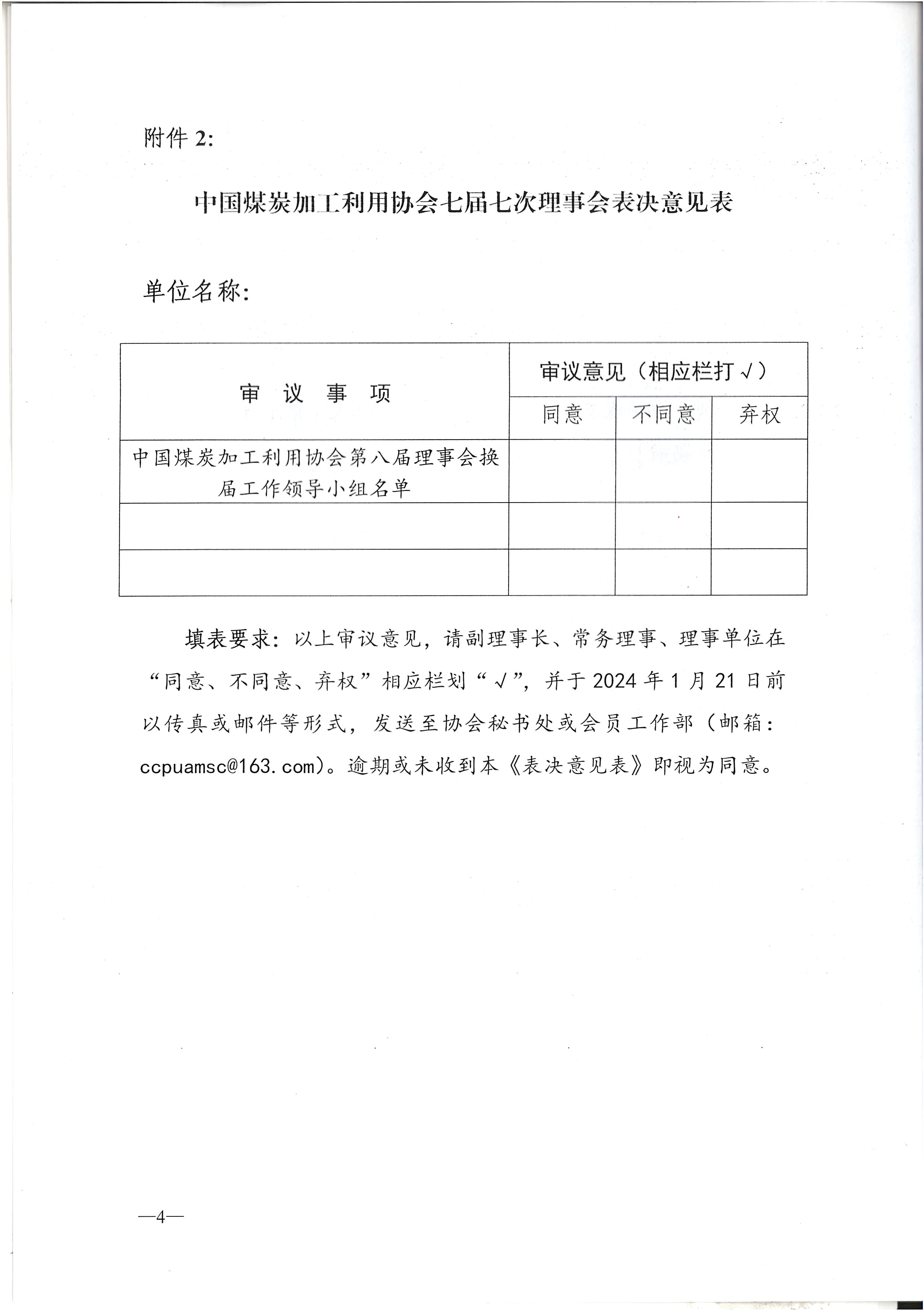 中国煤炭加工利用协会七届七次理事会表决意见表
