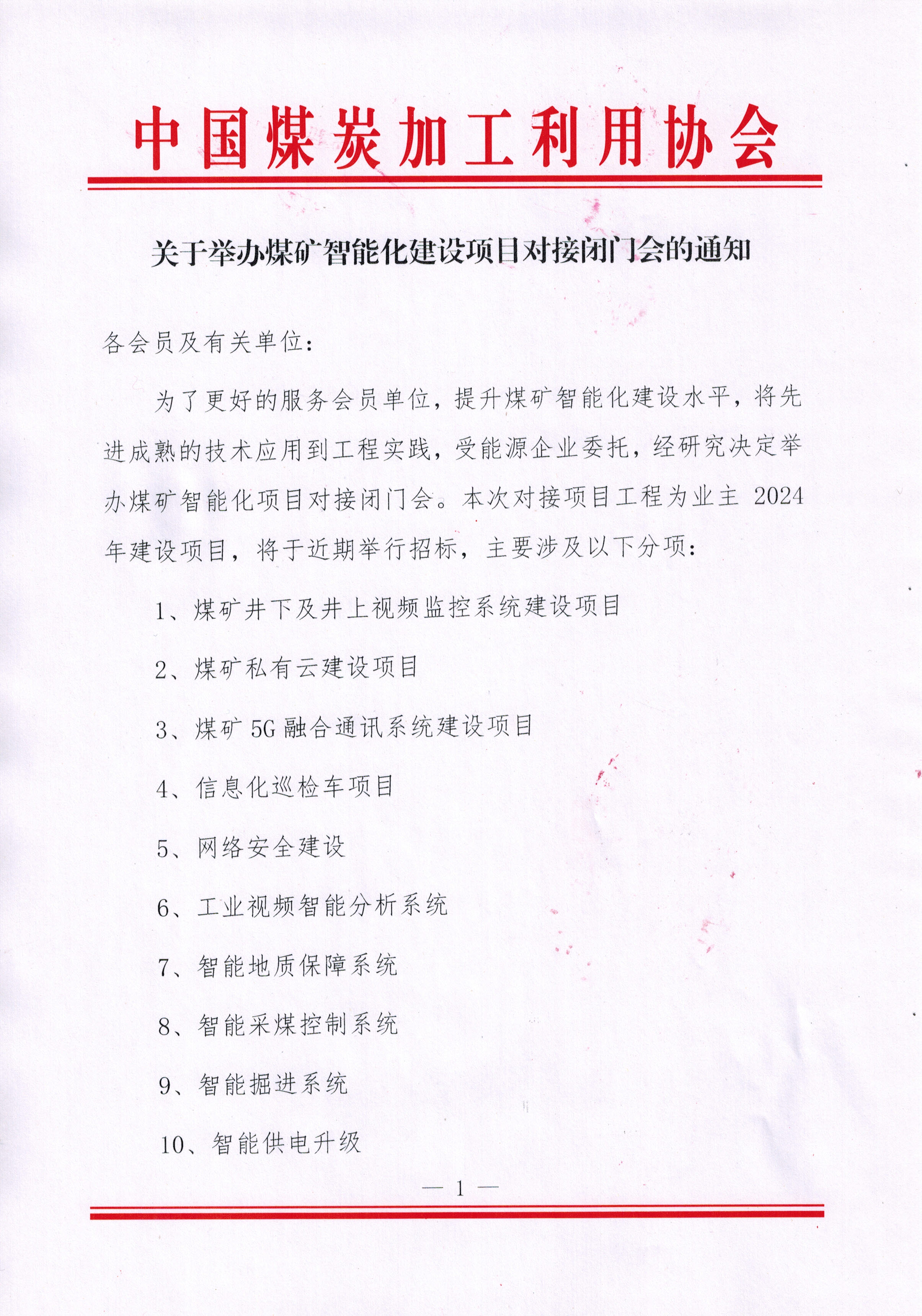 关于举办煤矿智能化建设项目对接闭门会的通知