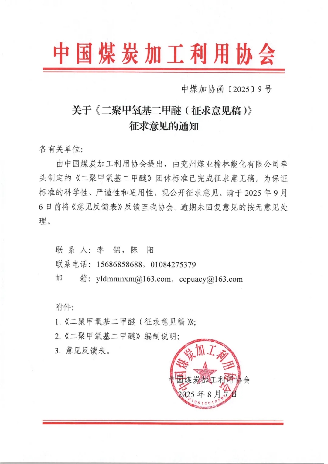 关于《二聚甲氧基二甲醚(征求意见稿)》征求意见的通知