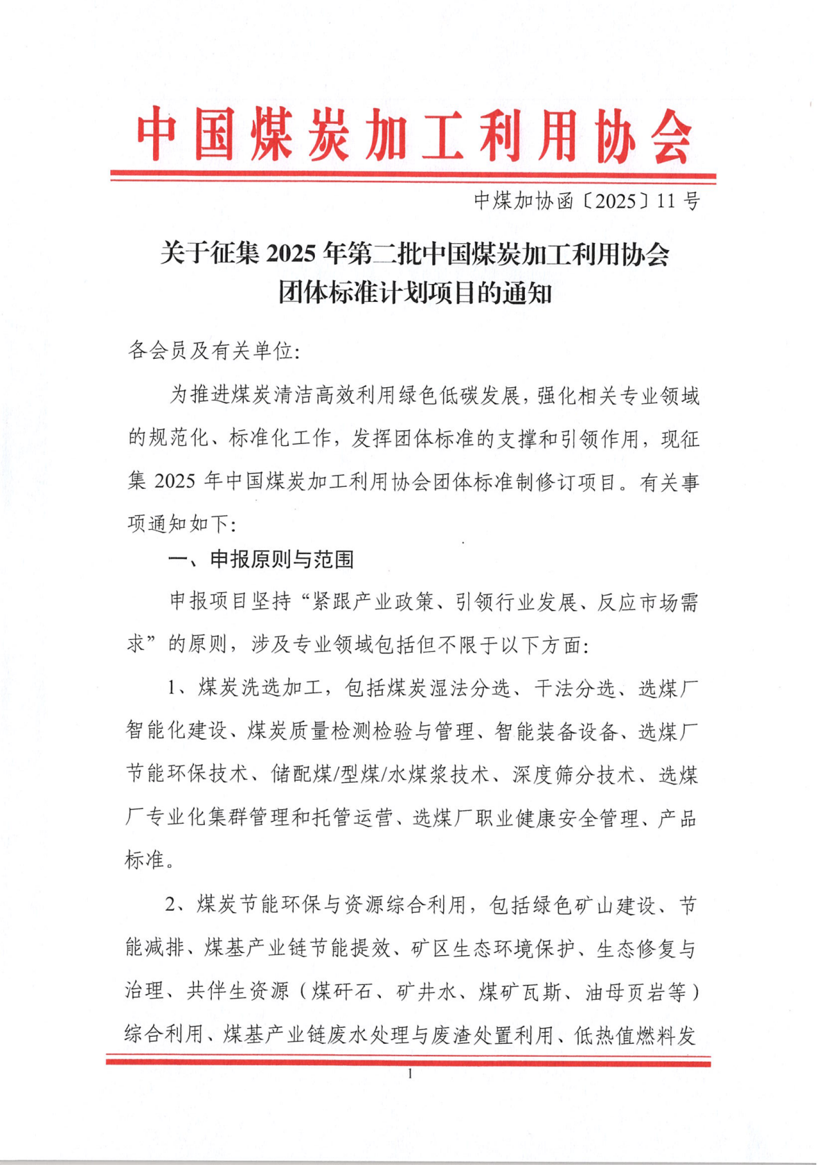 关于征集2025年第二批中国煤炭加工利用协会团体标准计划项目的通知