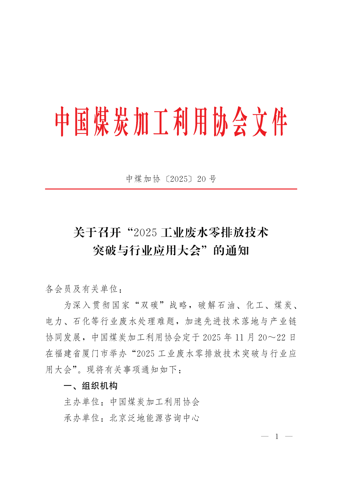 关于召开“2025工业废水零排放技术突破与行业应用大会”的通知