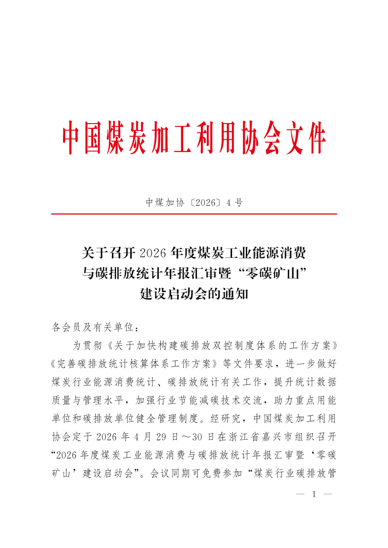 关于召开2026年度煤炭业能源消费与碳排放统计年报汇审暨“零碳矿山”建设启动会的通知