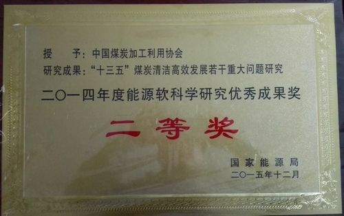 近期,我协会获得国家能源局授予的“2014年度能源软科学研究优秀成果二等奖”。获奖课题为《“十三五”煤炭清洁高效发展若干重大问题研究》,我协会主要参与负责煤炭分级提质利用部分。