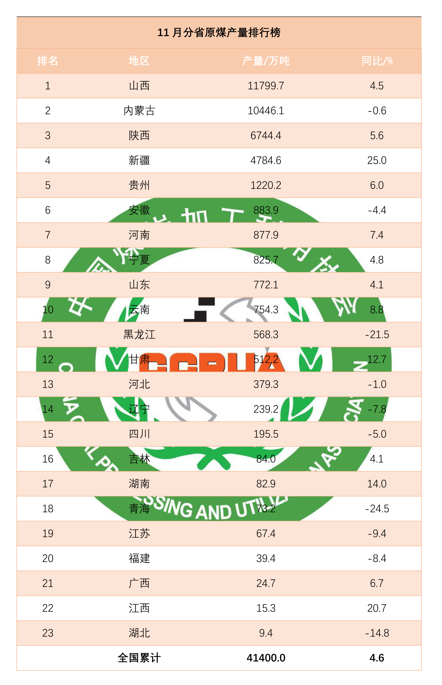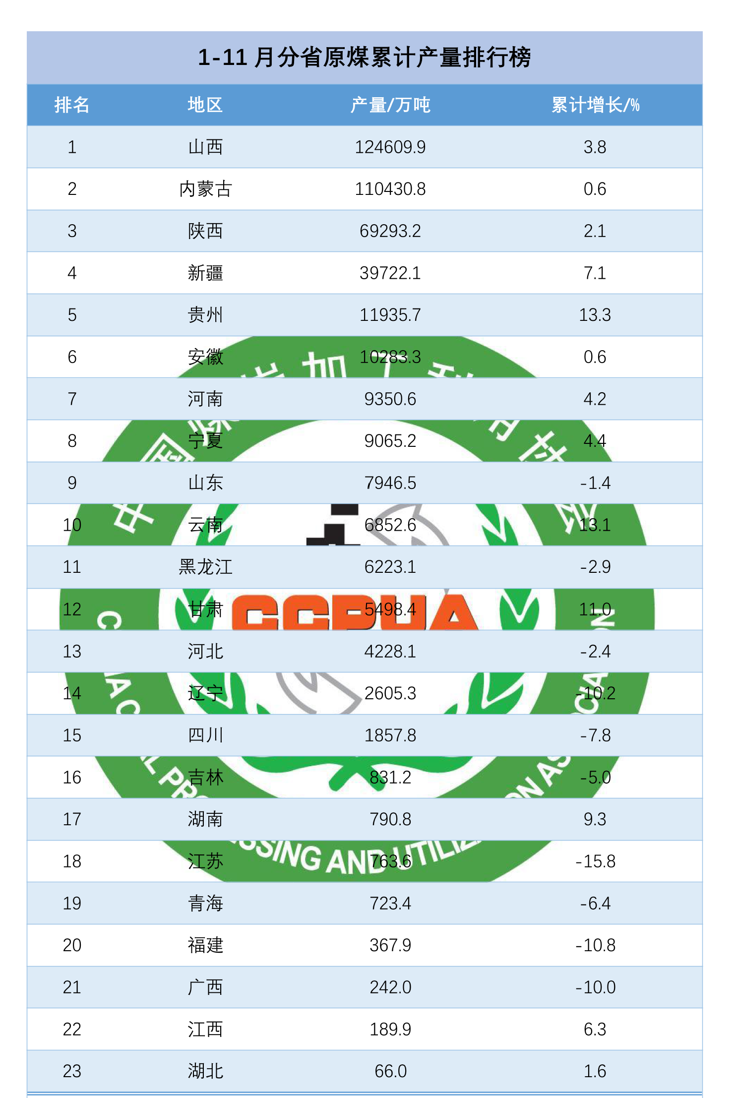 从分省数据来看,1-11月山西、内蒙古、陕西、新疆、贵州原煤产量累计同比分别增长3.8%、0.6%、2.1%、7.1%和13.3%。