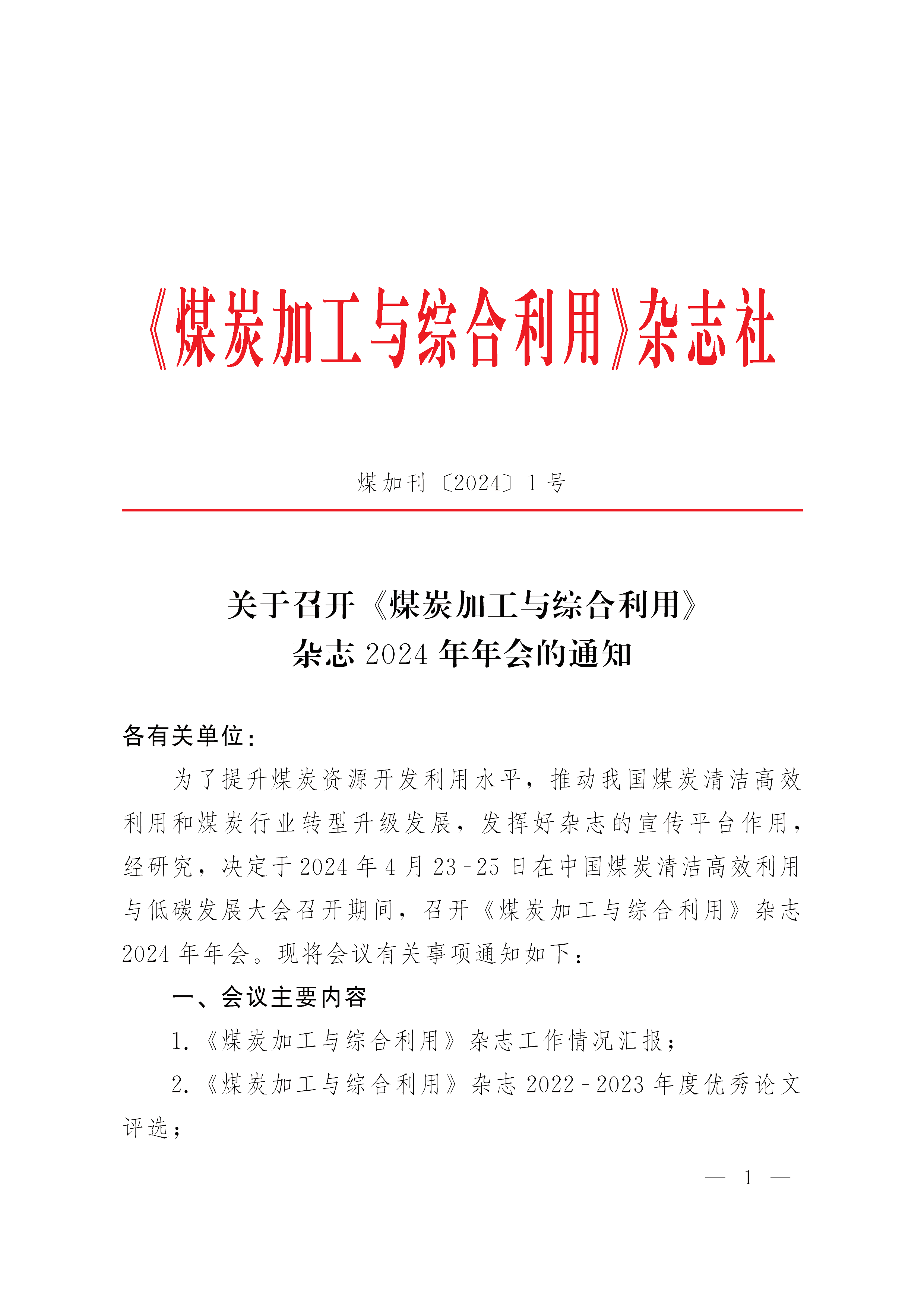 关于召开《煤炭加工与综合利用》杂志2024年年会的通知(PDF)