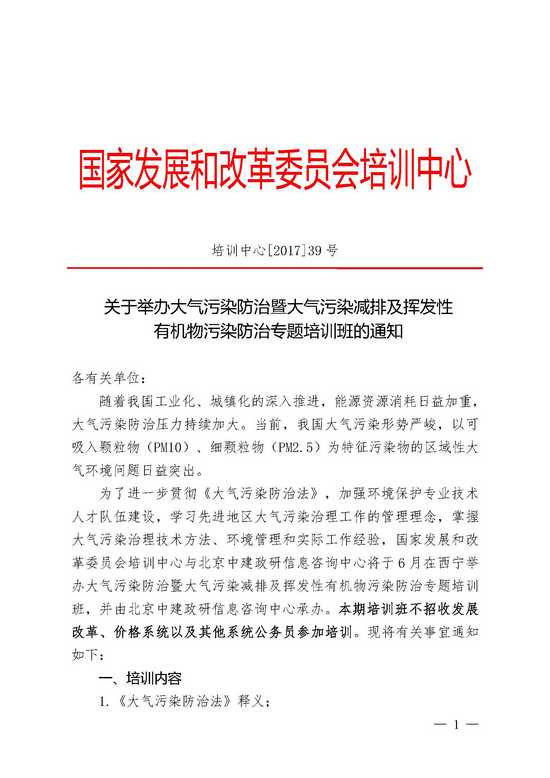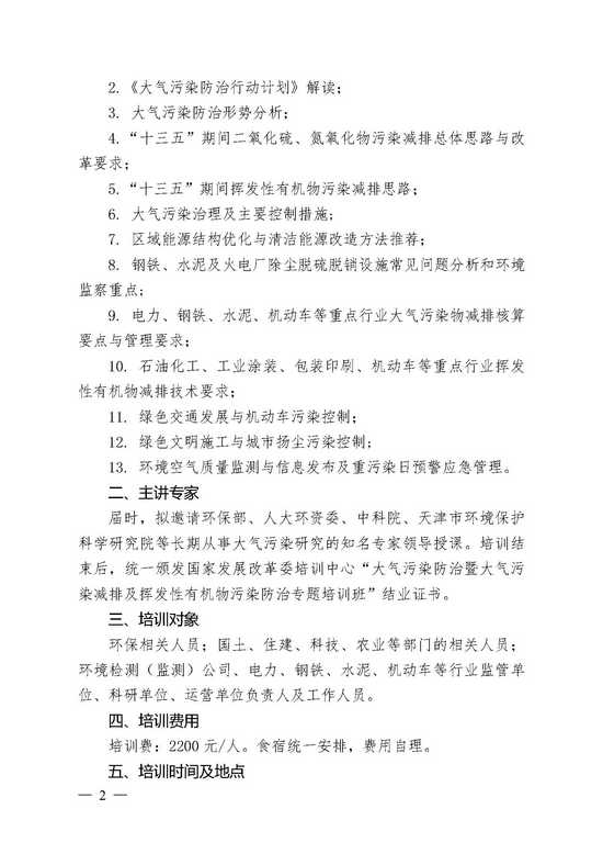 关于举办大气污染防治暨大气污染减排及挥发性有机物污染防治专题培训班的通知