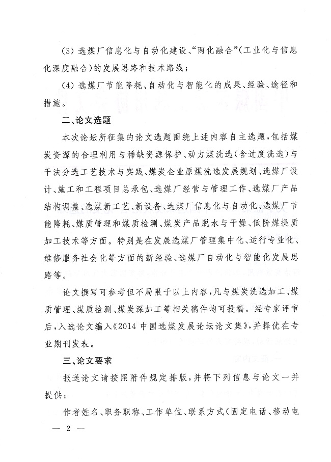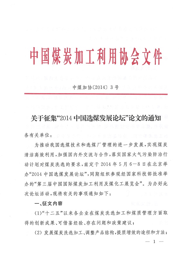 关于征集“2014中国选煤发展论坛”论文的通知