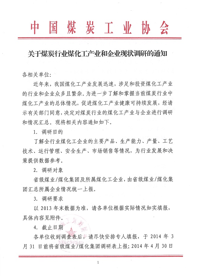 关于煤炭行业煤化工产业和企业现状调研的通知