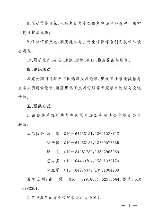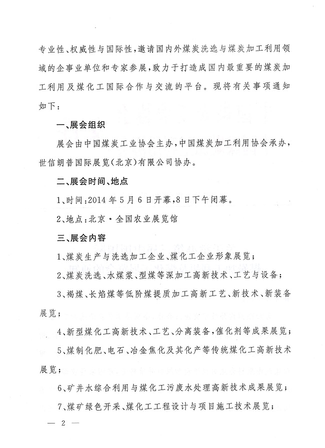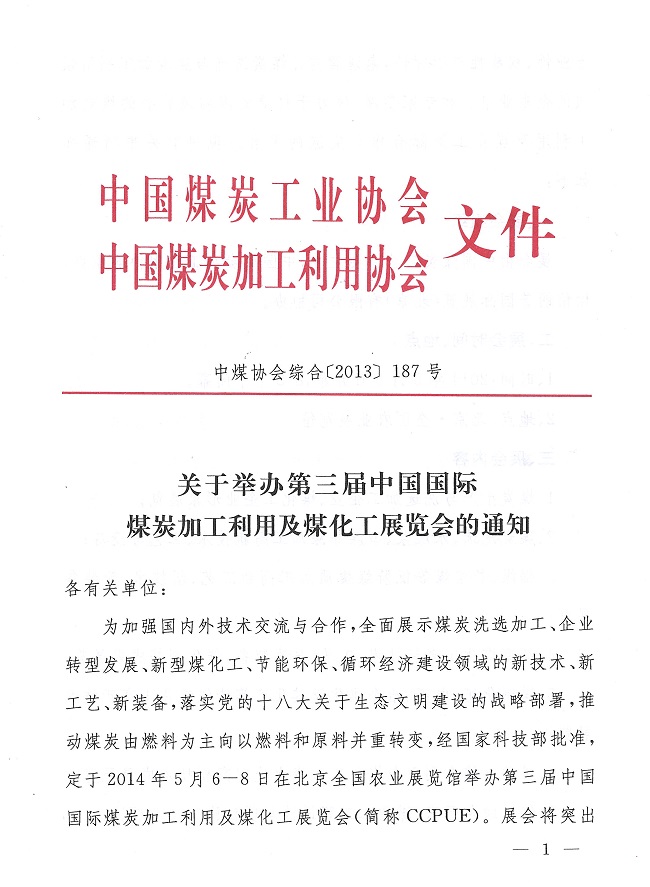 关于举办第三届中国国际煤炭加工利用与煤化工展览会的通知