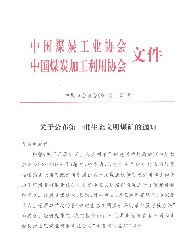 关于公布第一批生态文明煤矿的通知