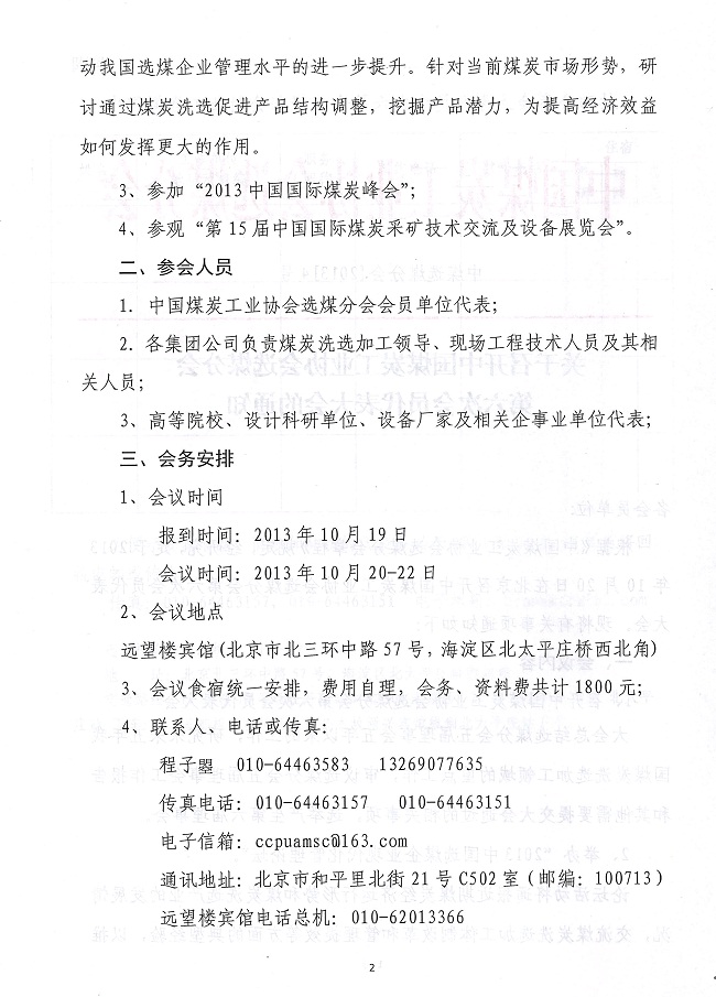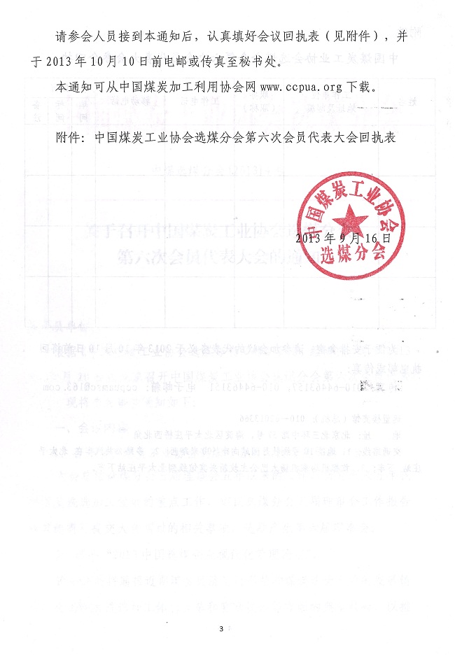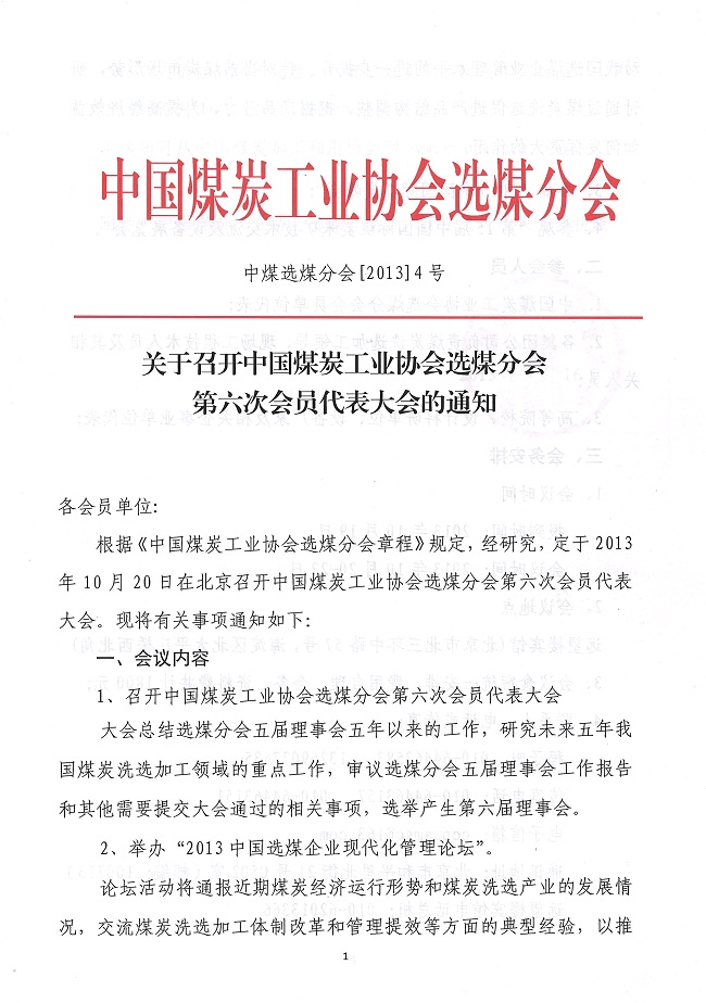 关于召开中国煤炭工业协会选煤分会第六次会员代表大会的通知