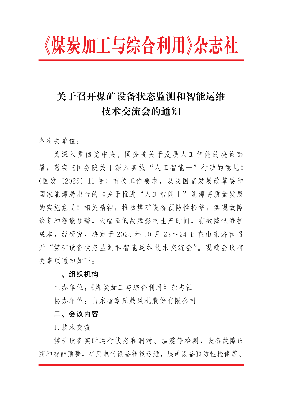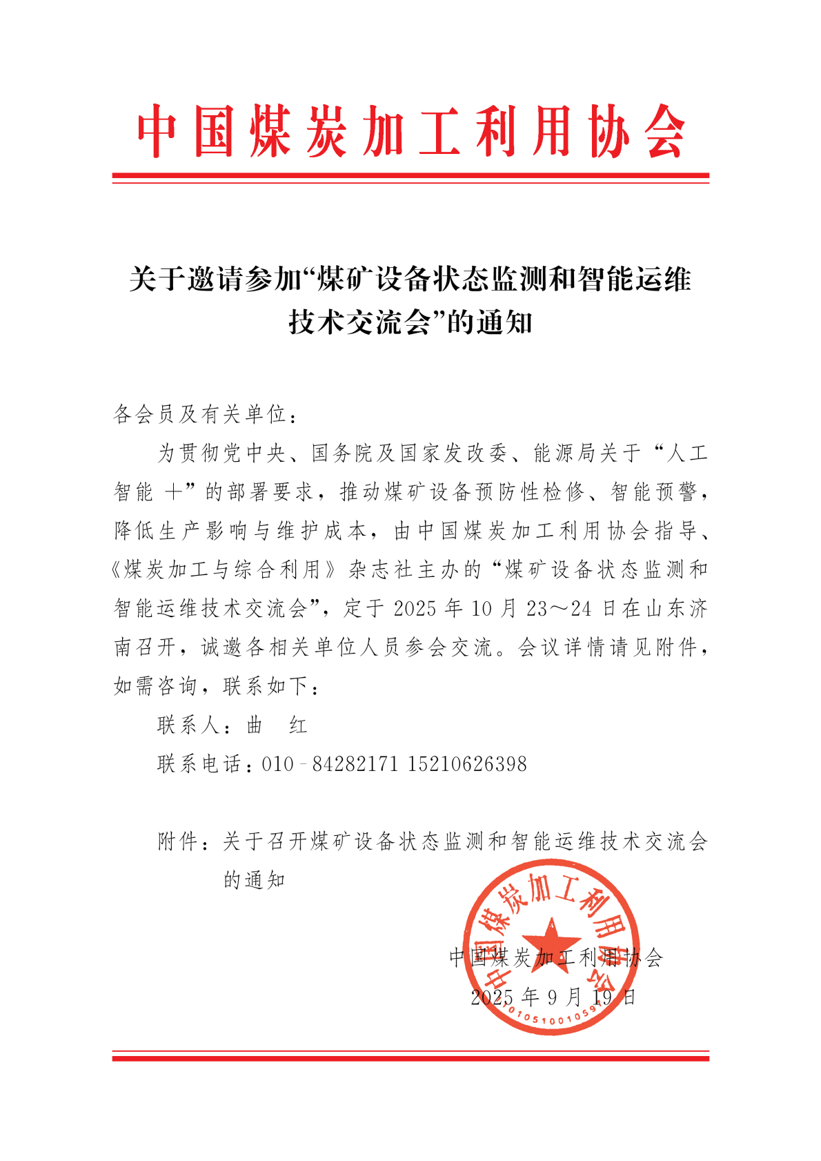 关于邀请参加“煤矿设备状态监测和智能运维技术交流会”的通知