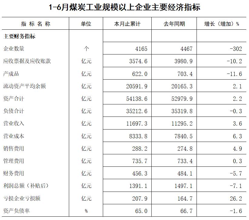 2019上半年规模以上煤炭企业主要经济指标完成情况