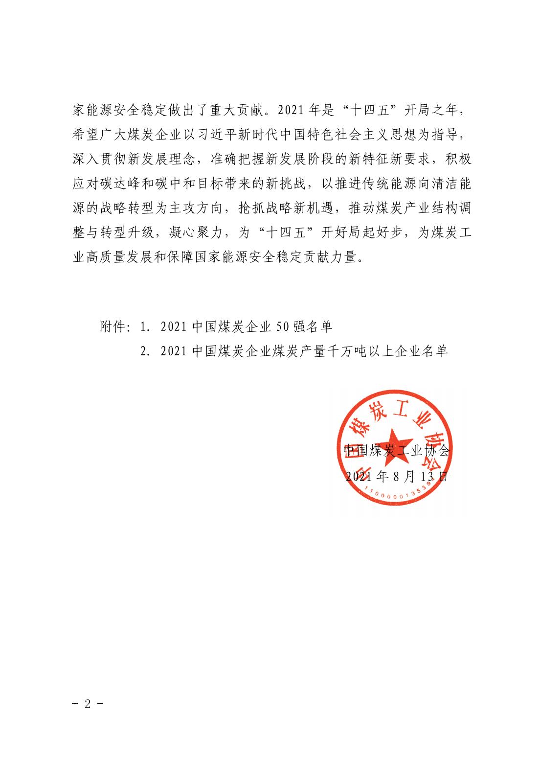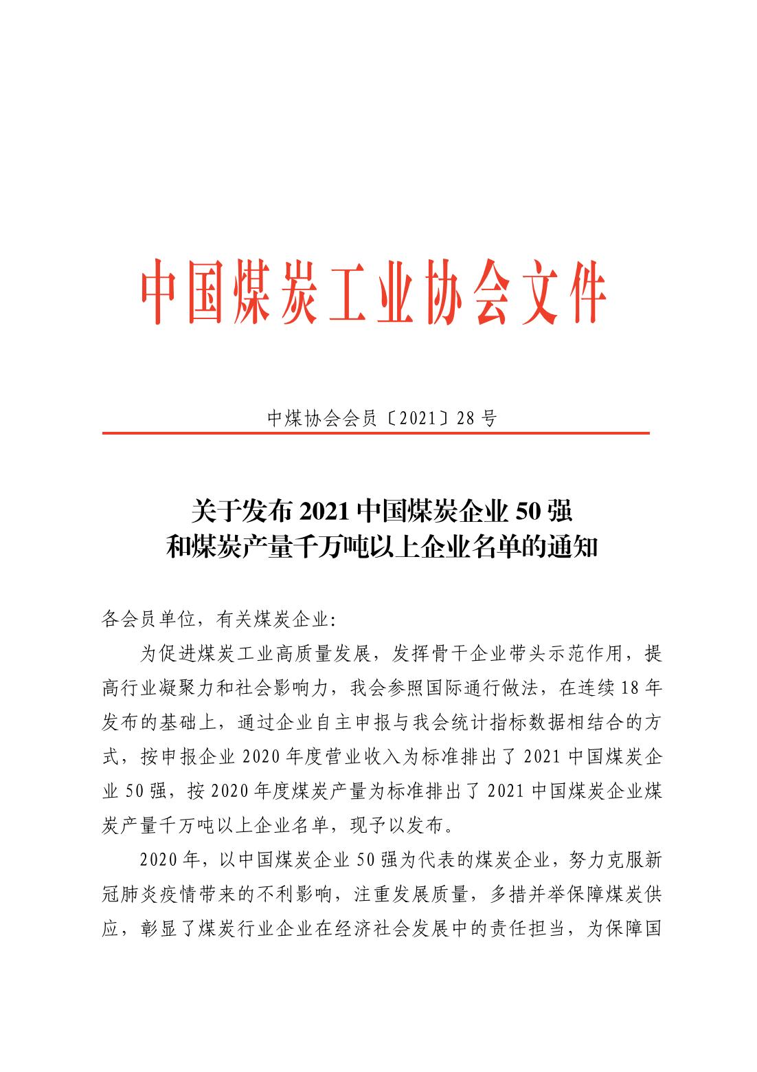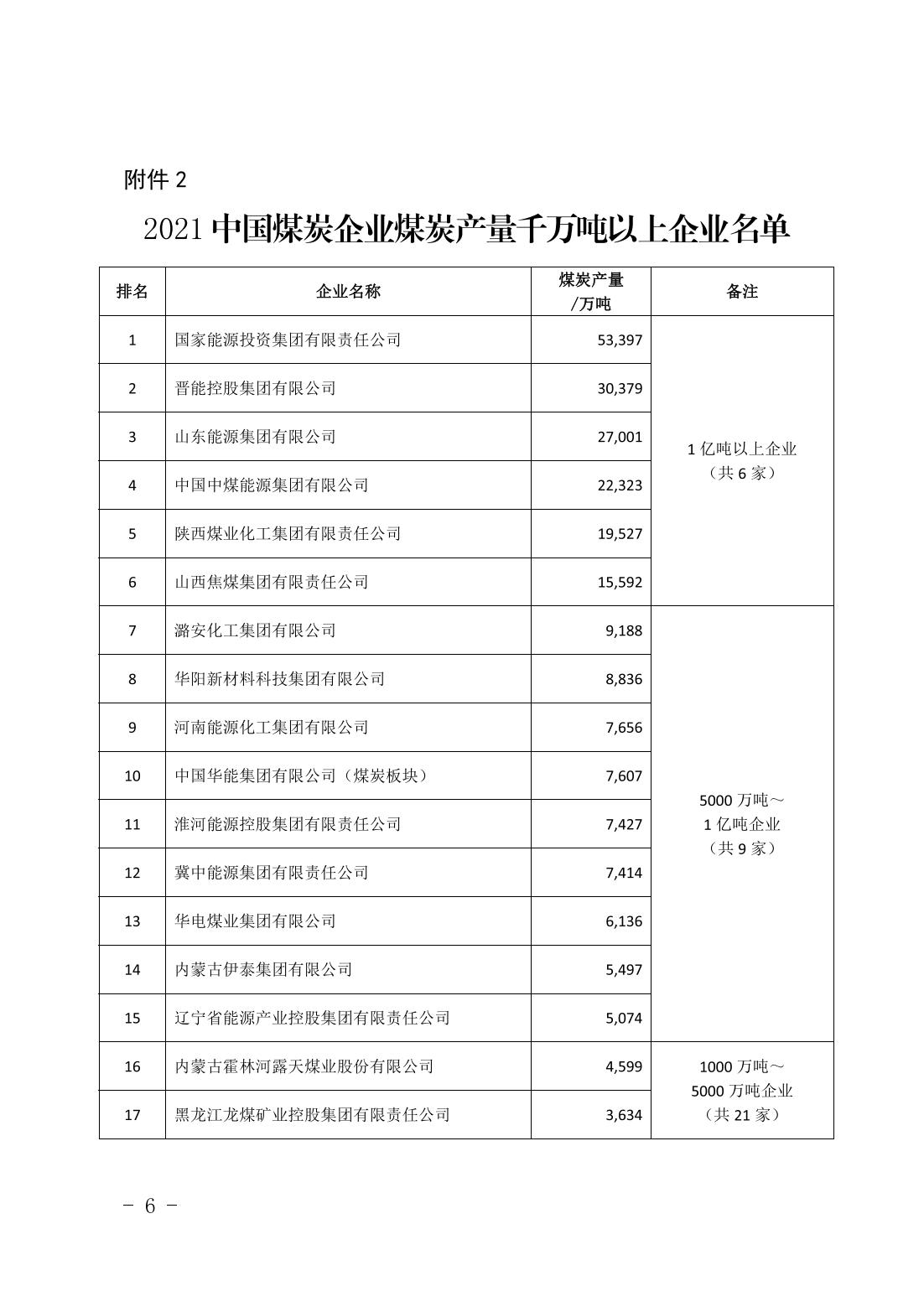 2021中国煤炭企业50强和煤炭产量千万吨以上企业名单发布