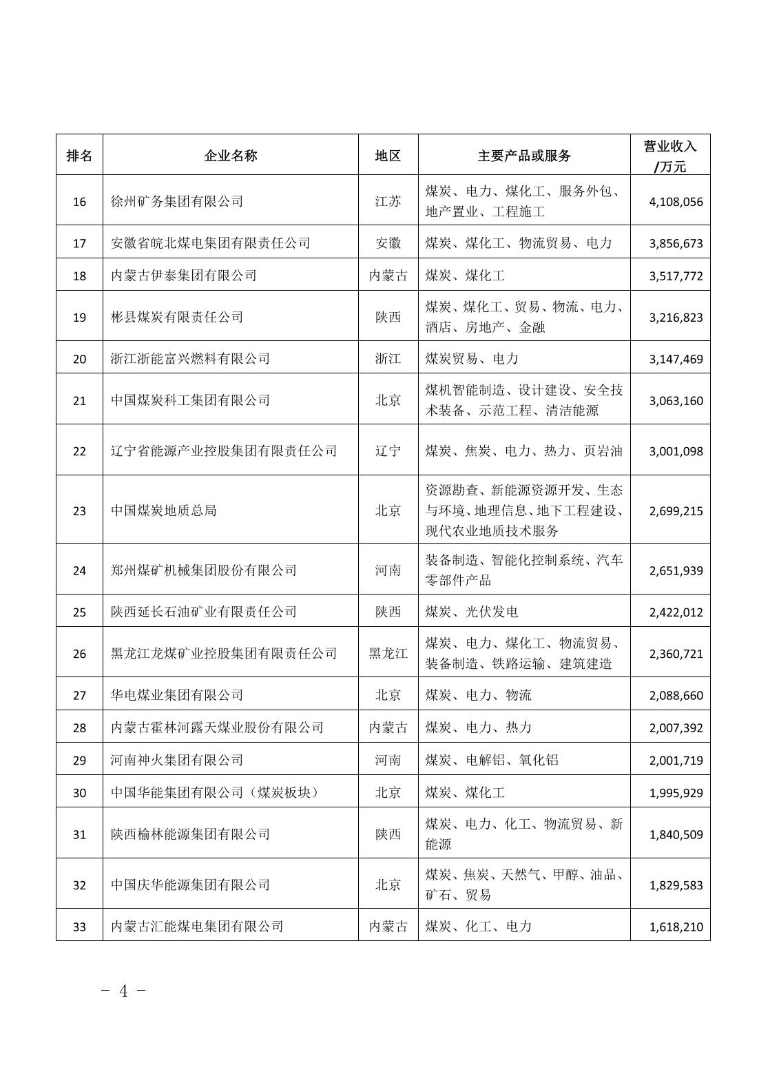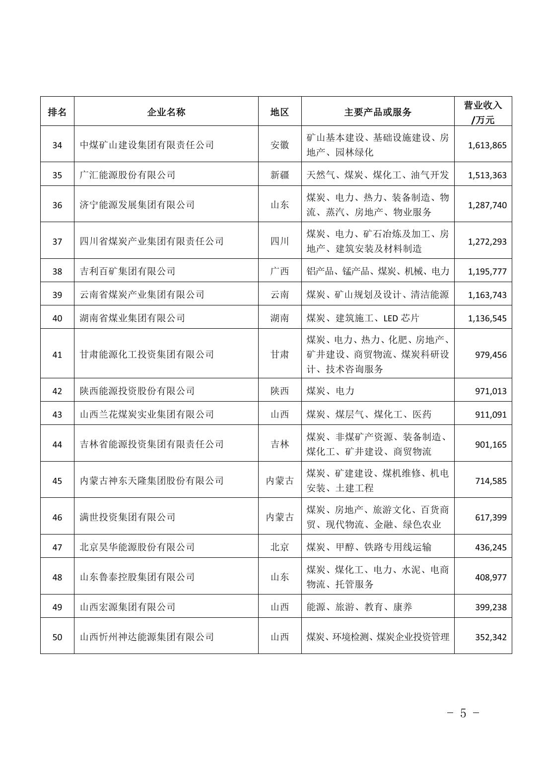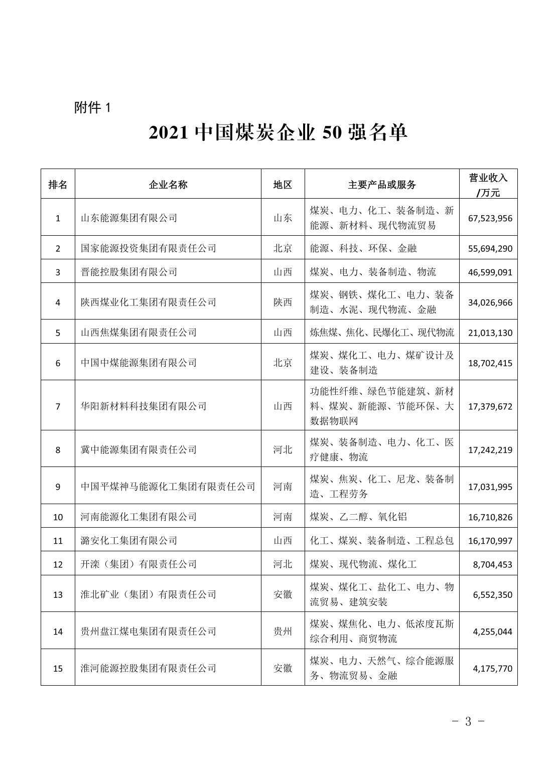 2021中国煤炭企业50强和煤炭产量千万吨以上企业名单发布