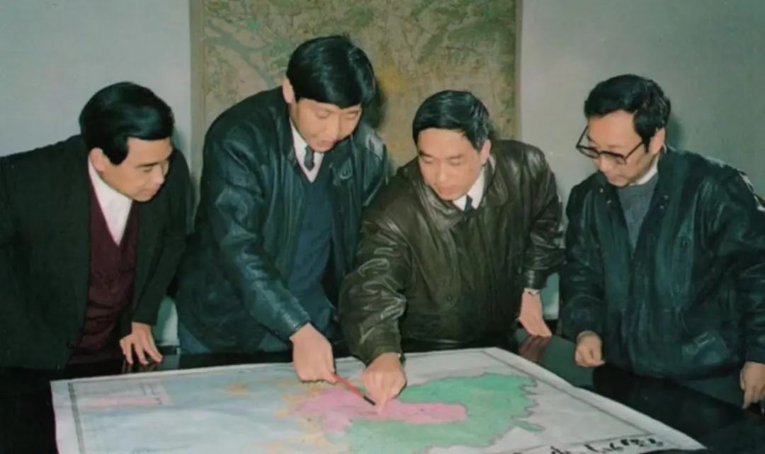1991年12月,习近平与同事讨论福州市战略规划设想。(图源:《习近平在福州》)