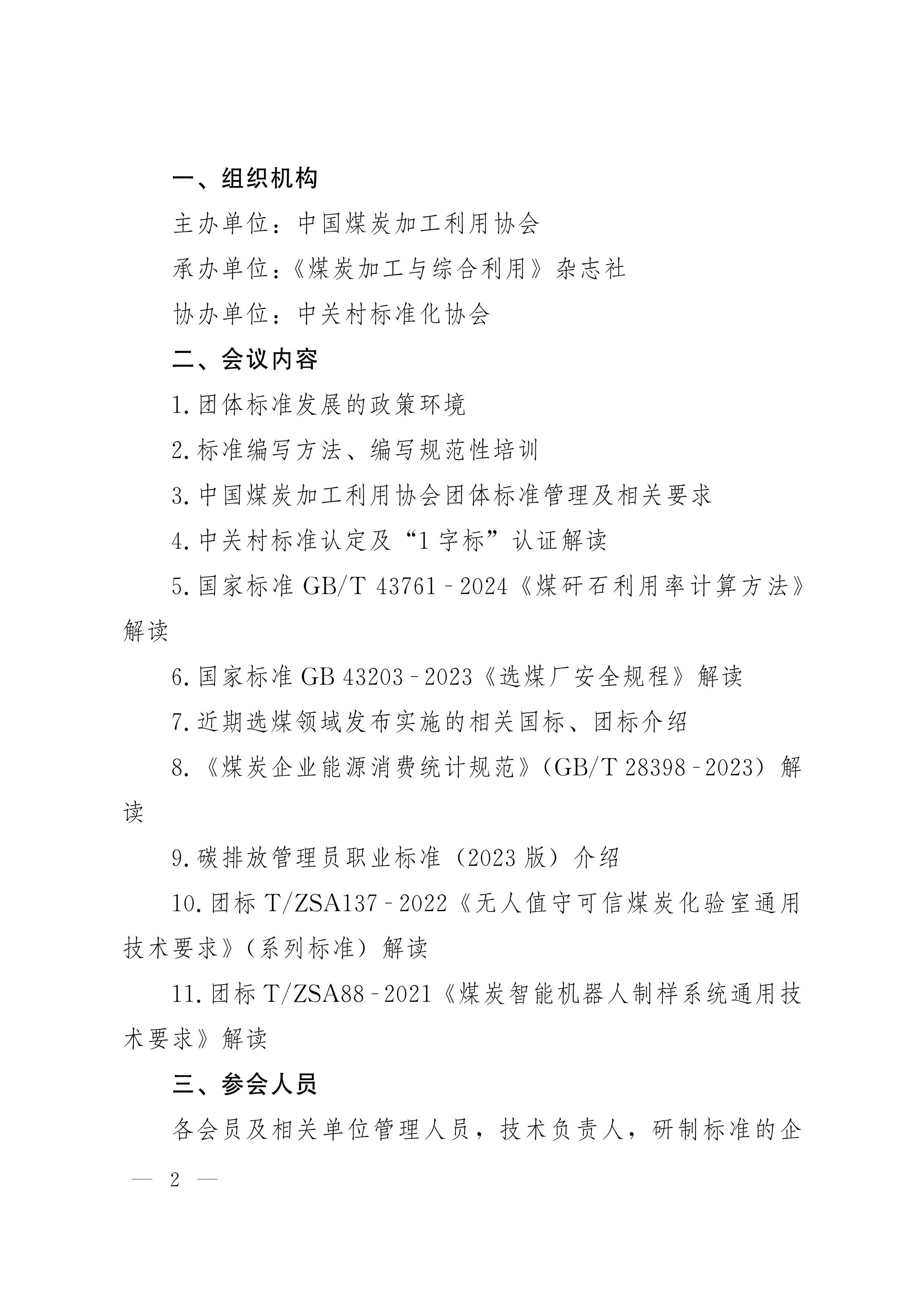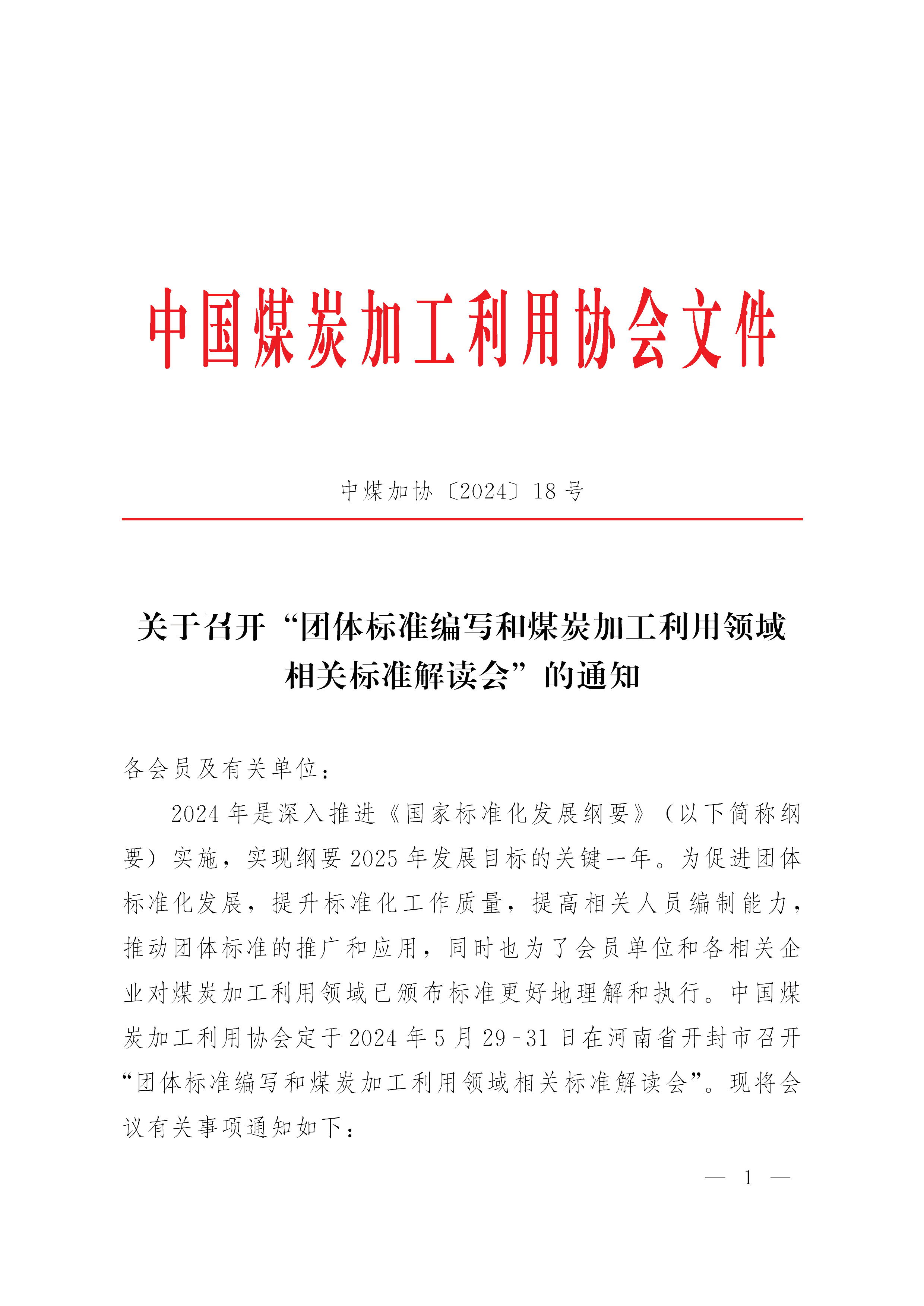关于召开“团体标准编写和煤炭加工利用领域相关标准解读会”的通知