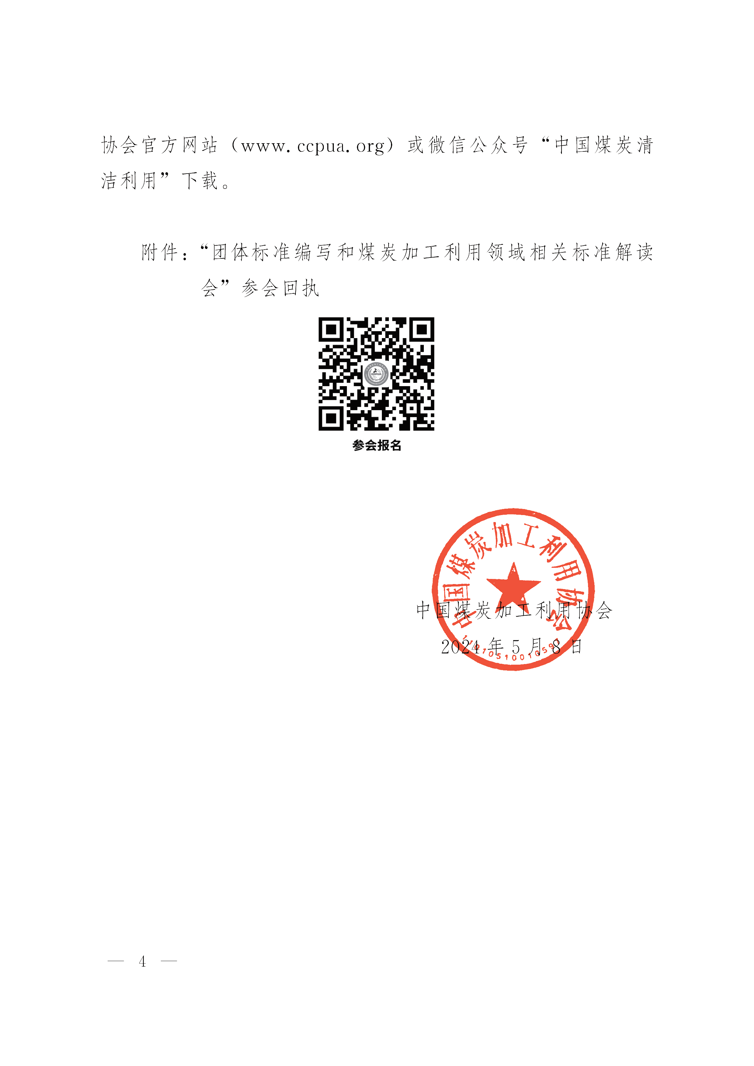 团体标准编写和煤炭加工利用领域相关标准解读会参会回执